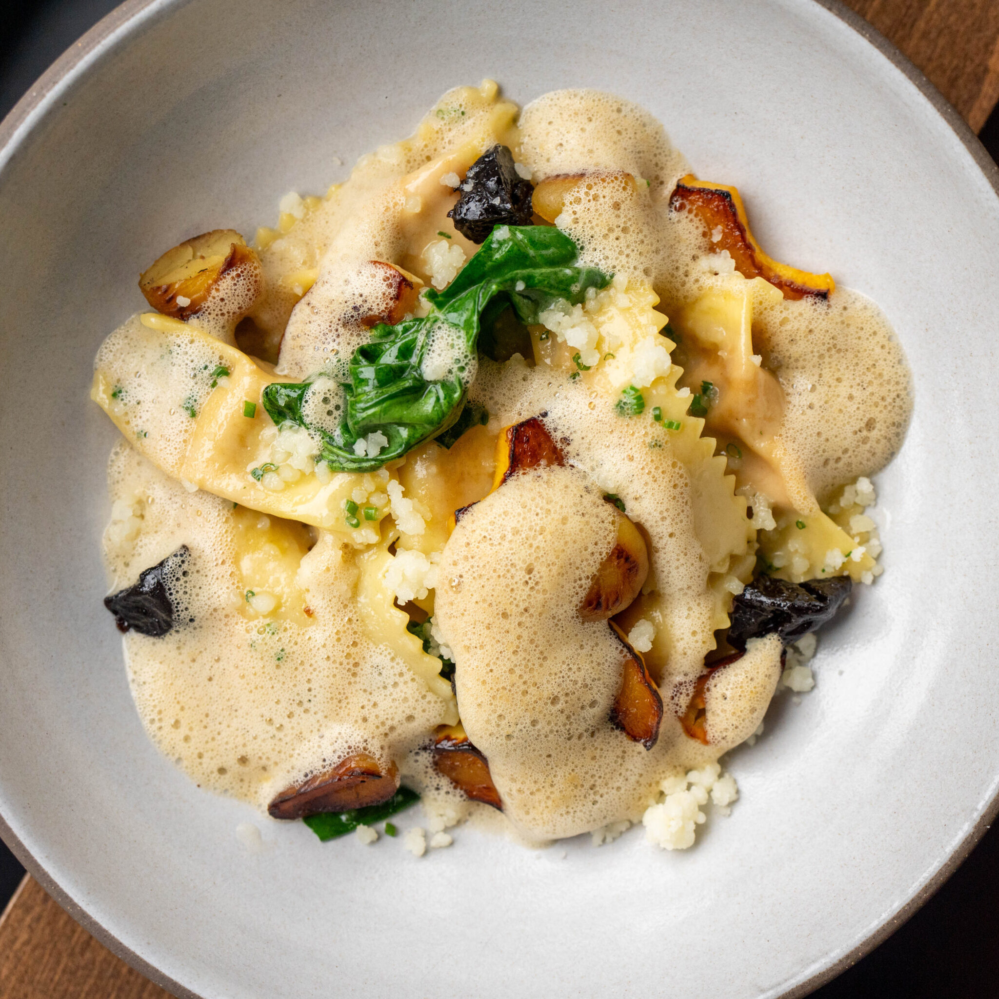 Butternut squash AGNOLOTTI, ricotta, chestnuts, Madeira foam, prunes, Pecorino Toscana | 29